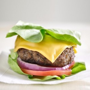 Homemade beef patty, tomatoes, onions, cheddar cheese wrapped with romaine lettuce served with French Fries