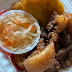 $21.95 – $24.95Price range: $21.95 through $24.95 $Griot meat combo with Pikliz and Plantain -