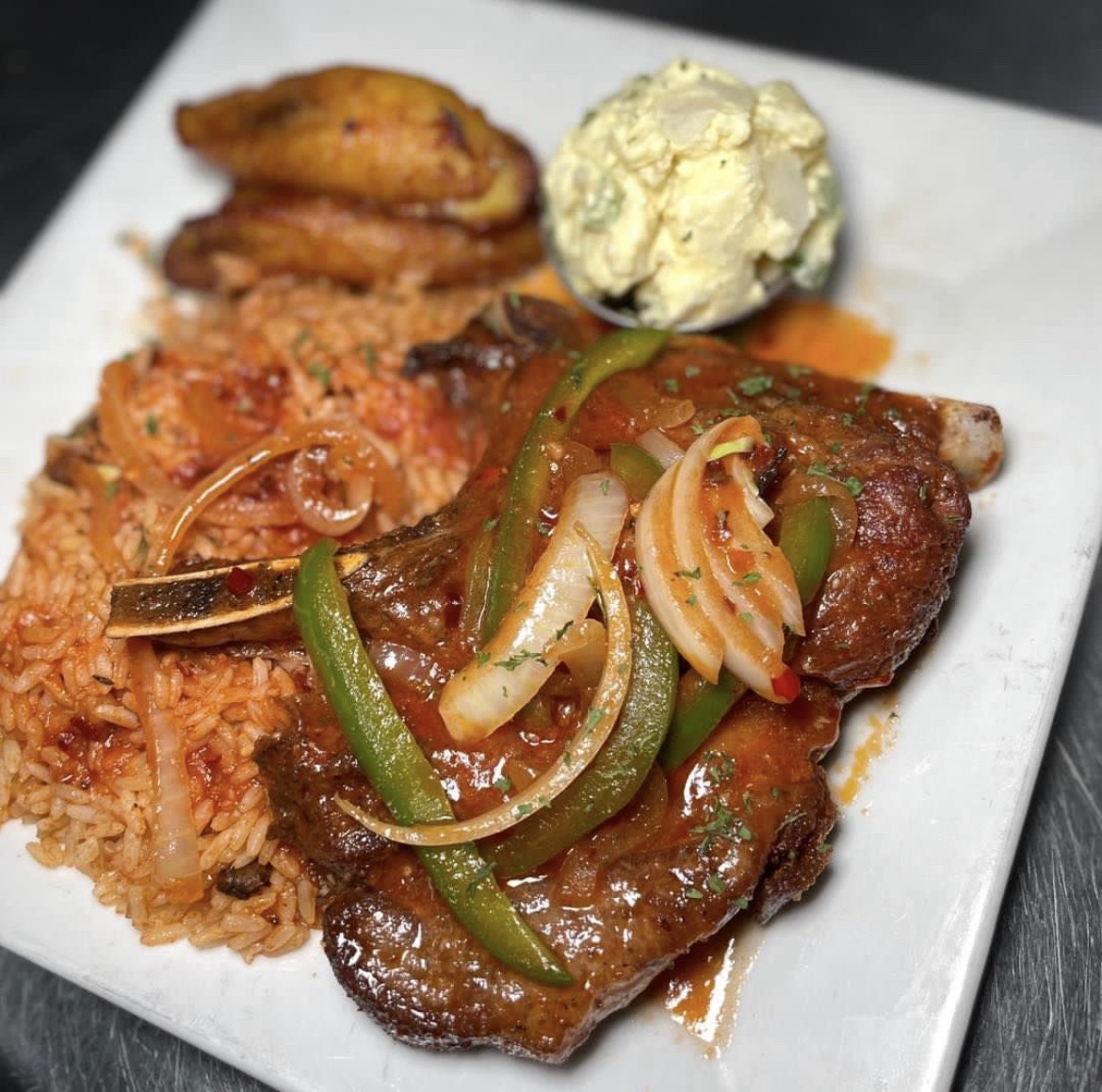 Baked, Steamed or Fried Pork Chop served with peas n rice and your choice of two sides.